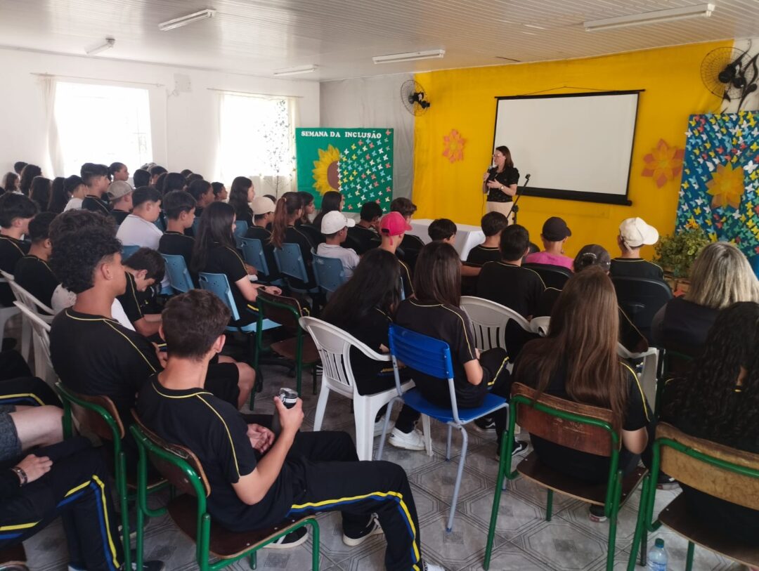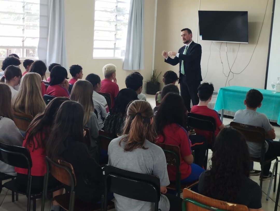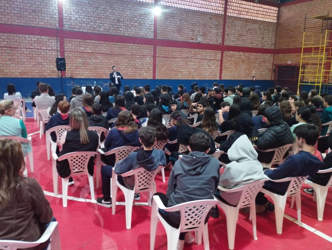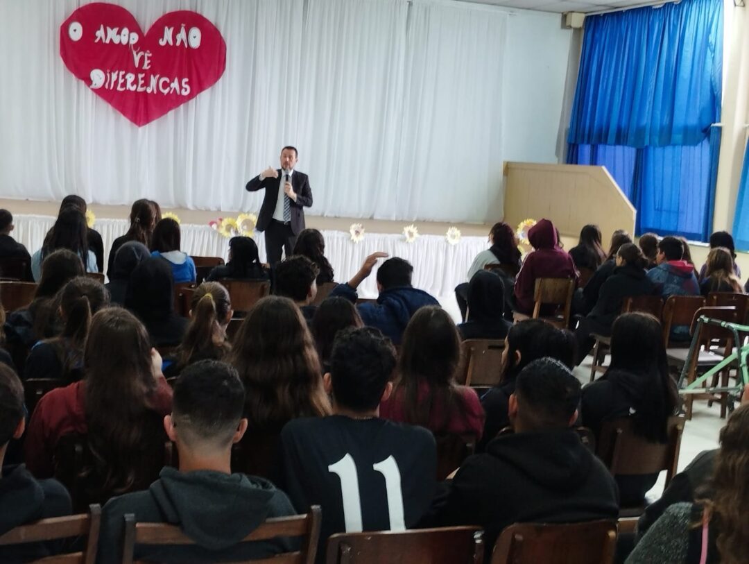 Um público de aproximadamente 2.600 alunos, do 6º ano ao 9º ano do Ensino Fundamental II e do 1º ao 3º do Ensino Médio, das escolas Municipais e Estaduais de Mafra recebeu a palestra com o tema “Medidas Socioeducativas”.
