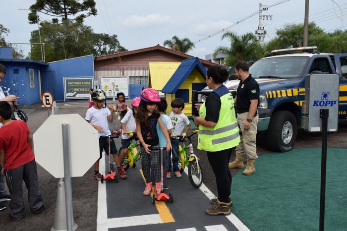 No local, além de palestra com representantes da PRF, as crianças colocam em prática tudo o que aprendem, em um cenário que reproduz as ruas de uma cidade ou rodovia, com toda a sinalização, lombadas, radares e bases de apoio aos usuários.