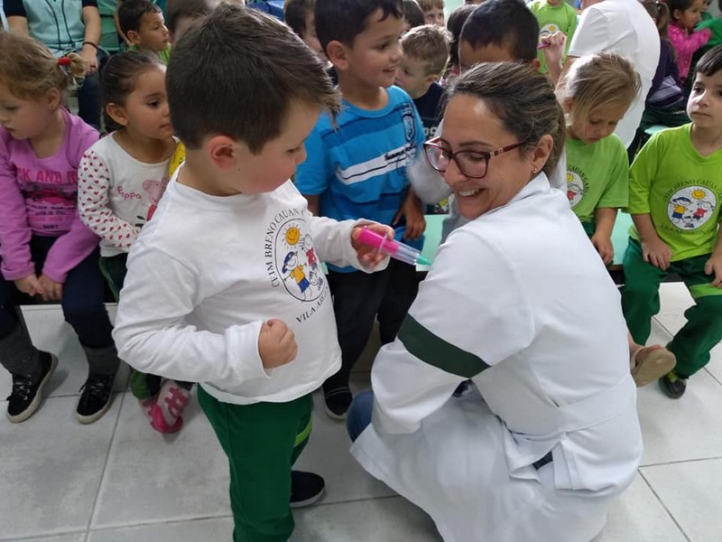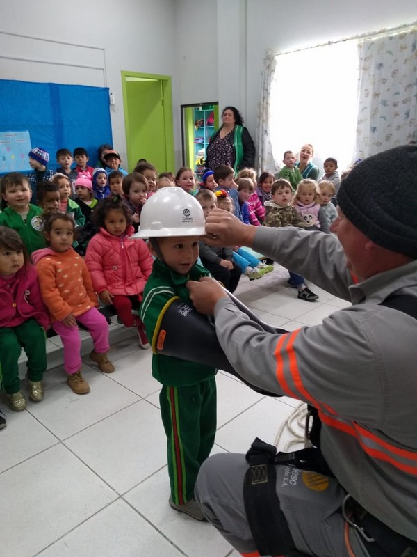 No CEIM Vila Nova a proposta foi despertar a curiosidade e o conhecimento sobre o mundo do trabalho nas diferentes profissões, dentre elas a de médico e de artista plástico. O CEIM Anjo da Guarda levou bombeiros para falar sobre sua profissão.