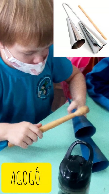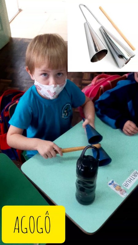 A atividade com instrumentos musicais proposta pelo professor está atraleda à disciplina de arte e musicalização na Educação Infantil. Ele utilizou-se de uma sequência de atividades lúdicas com o uso de diversos instrumentos, em especial o Agogô.