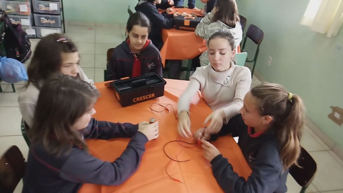 Tendo como instrutora Sabrina Juliana Liebel, os estudantes foram desafiados a resolver diversos cenários associados ao tema energia/eletricidade. Isso envolveu construir e testar experiências, montar e desmontar eletrodomésticos para entender seu funcionamento, e conhecer ou discutir sobre os impactos da energia (elétrica) em suas vidas.