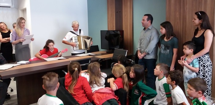 Dentre os presentes que o prefeito recebeu dos alunos, uma cesta de verduras colhidas na própria escola, um cartão e canções executadas pelos alunos Renan e Juliana Grochovski e Nádia Becker (no violão) e pelo representante da comunidade, Izaltino Becker (gaita). Em seguida, em coro, todos cantaram juntos o parabéns à você. O prefeito agradeceu a homenagem e disse “como é bom estar com pessoas que gostamos e com vocês, crianças, que renovam nossa energia”. Além do cumprimento das crianças, os servidores da Prefeitura também parabenizaram pessoalmente o chefe do Executivo.