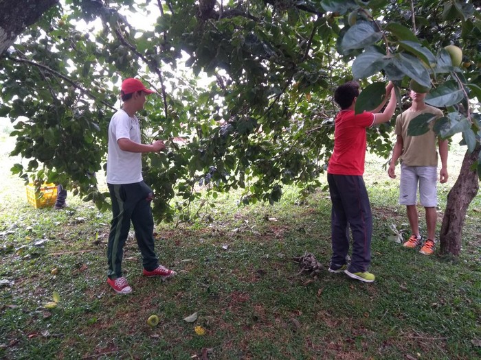 Os alunos do Ensino Fundamental já fizeram, nesta semana, a primeira colheita. Como explicou o diretor Julcir Wisovaty Filho “as árvores do pomar estavam carregadas e em ponto de colheita, então pensei em incrementar o cardápio da alimentação escolar”. Os cardápios elaborados pelo departamento para toda a educação de Mafra incluem a oferta de pera, maçã, laranja, morango, banana, mamão e do próprio caqui, sempre primando por frutas da estação, mas como esta última ainda não esta sendo ofertada, a escola já iniciou com a produção própria, adiantando-se às demais.