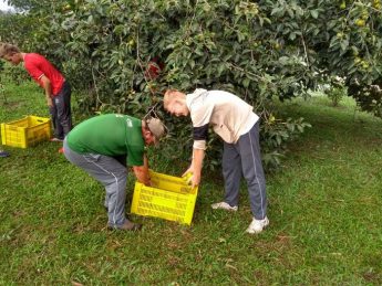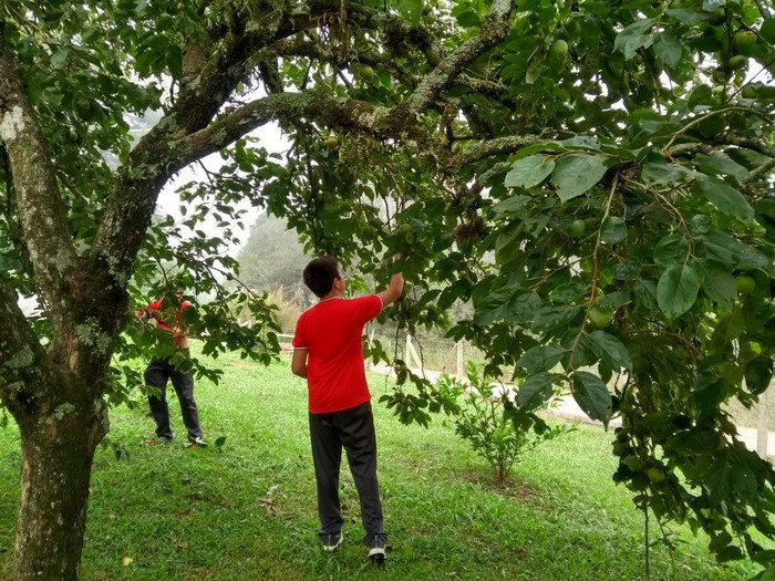 Os alunos do Ensino Fundamental já fizeram, nesta semana, a primeira colheita. Como explicou o diretor Julcir Wisovaty Filho “as árvores do pomar estavam carregadas e em ponto de colheita, então pensei em incrementar o cardápio da alimentação escolar”. Os cardápios elaborados pelo departamento para toda a educação de Mafra incluem a oferta de pera, maçã, laranja, morango, banana, mamão e do próprio caqui, sempre primando por frutas da estação, mas como esta última ainda não esta sendo ofertada, a escola já iniciou com a produção própria, adiantando-se às demais.