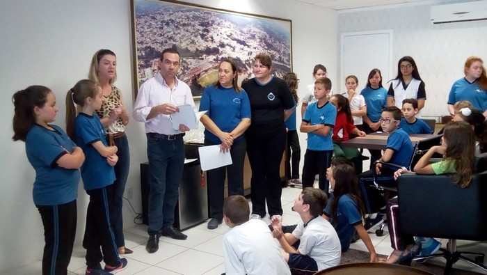 O prefeito Wellington Bielecki agradeceu a visita e parabenizou os alunos e os professores pelo trabalho que vêm desenvolvendo. Explicou quais as atribuições do Prefeito, a diferença entre os poderes Executivo, Legislativo e Judiciário destacando a importância da harmonia entre os três poderes, “para que a cidade caminhe numa mesma direção visando o bem do povo”. Sobre ser prefeito disse: “é muito bom ser prefeito e poder melhorar a vida das pessoas”.