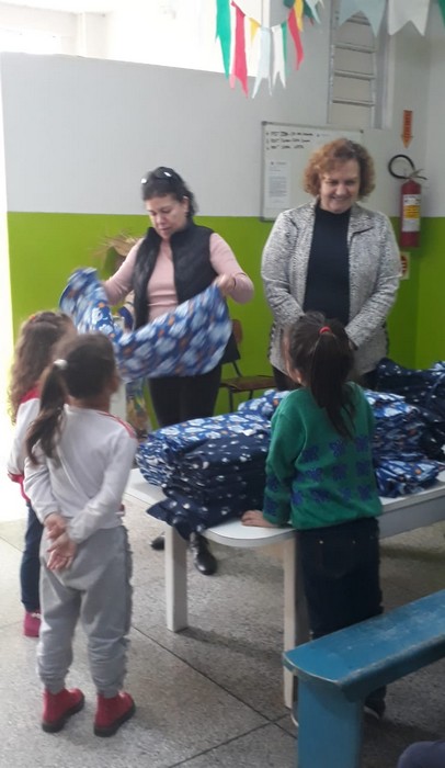 Os 66 alunos do Maternal I ao Jardim II do Centro de Educação Municipal Vila Olsen receberam um presente da Associação de Senhoras Rotarianas de Mafra: um poncho de soft para espantar o frio. As doações aconteceram nesta semana. A gestora, professoras e funcionários da escola agradeceram a parceria e atenção da associação para com os alunos da unidade. “Ficamos muito felizes com as doações, que serão muito úteis para nossos alunos, nesse momento em que o frio está chegando”, declarou a gestora Jacqueline Vanderlinde, agradecendo o empenho e o carinho da associação.