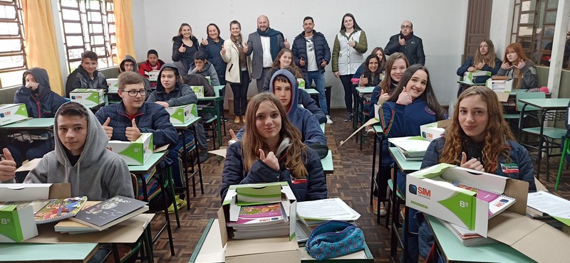 O kit com as apostilas do Sistema SiM de Ensino, com o material do aluno para o 3º bimestre deste ano foi entregue aos  estudantes do 1º ao 9º ano da rede municipal de ensino. O Prefeito Emerson Maas e a Secretária Municipal de Educação, Jamine Emmanuelle  Henning acompanharam a entrega no início da manhã desta segunda-feira, dia 1º de agosto, nas escolas CEM Beija Flor e EMEF São Lourenço.