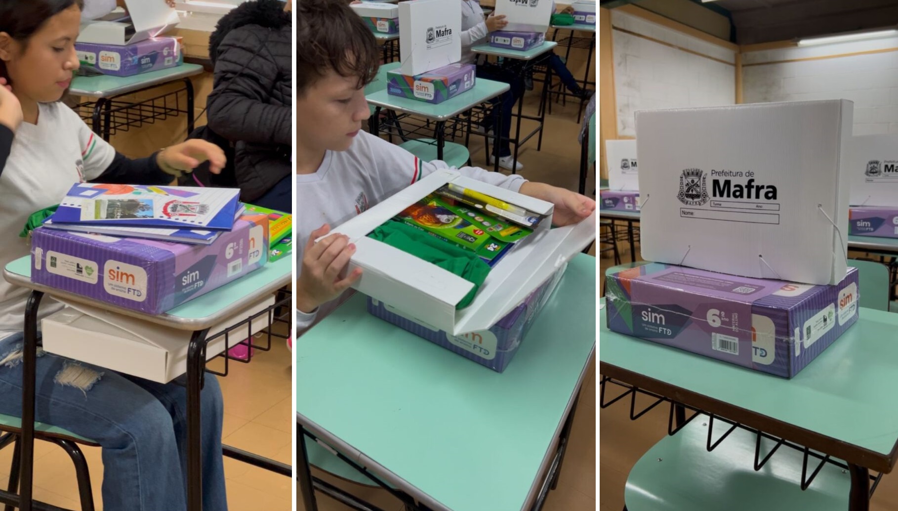 Os kits foram adquiridos para todos alunos da Rede Municipal de Ensino, através da Secretaria Municipal de Educação, Esporte e Cultura. Acompanhe o conteúdo de cada kit escolar: