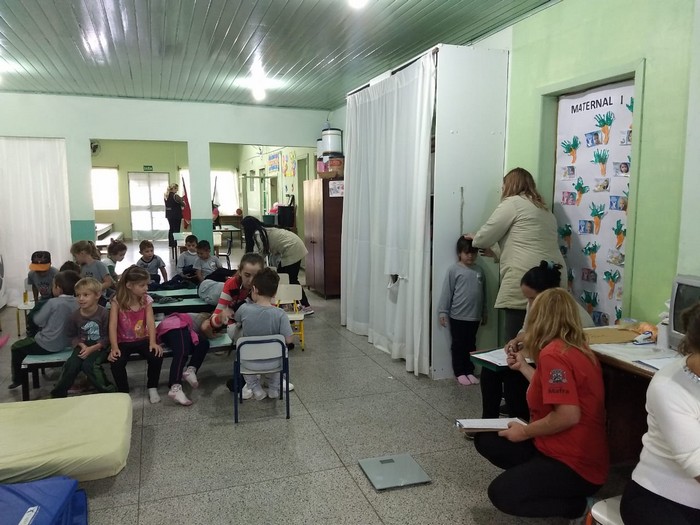 A ação beneficiou os alunos dos perÃodos matutino e vespertino. Os profissionais também fizeram a avaliação antropométrica e o teste de Snellen (escala optométrica) em todas as crianças, com apoio da equipe de enfermagem.