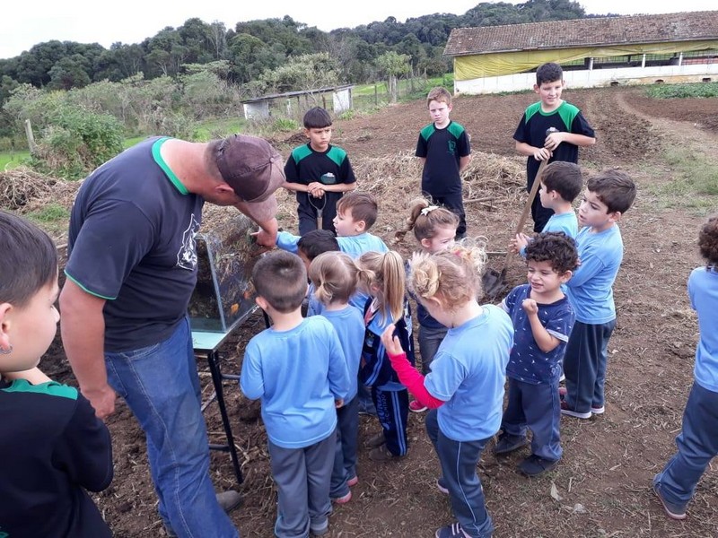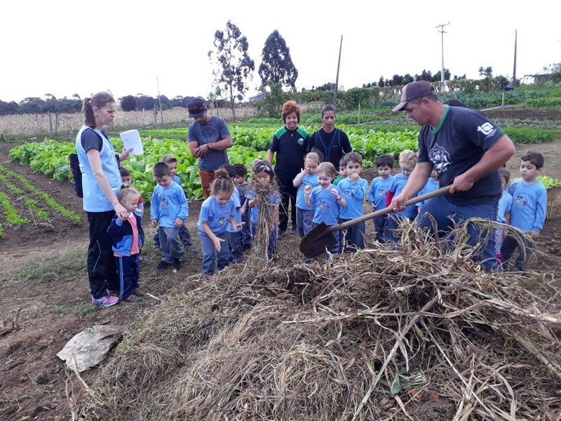 Ainda durante o mês de junho a escola iniciou um trabalho de compostagem, em parceria com a Escola Agrícola de Mafra, atividade relacionada ao tema “Eu e a Natureza: Interagindo com as plantas”. Nesse sentido a turma do Maternal II primeiramente teve a visita do técnico agrícola Edson Dvojatski, que explicou o processo e deixou preparado o espaço para a realização do compostagem, que ocorreu após a visita à Escola Agrícola, onde os alunos puderam  observar  como a compostagem é feita.  Todas essas ações, além dos temas trabalhados, estão também relacionadas ao projeto “Boas Práticas na Alimentação Escolar”, que a escola vem participando neste ano.