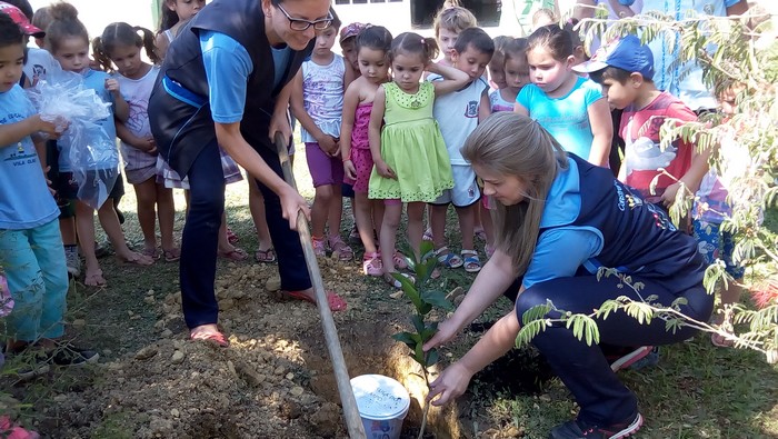 A diretora da escola, Jacqueline Vanderlinde, professores e funcionários participaram do momento em que a capsula foi enterrada e a árvore plantada. Também apoiou o projeto o amigo da escola o “tio Paulo”.