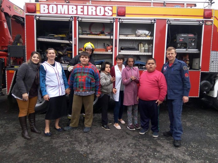 Na última quarta-feira 04, às 9h, ocorreu a visitação dos alunos das turmas de SPE TEA I e II do Centro de Atendimento Educacional Especializado “Irmã Inês” no quartel do Corpo de Bombeiros Militar (CBM) de Mafra. Alunos e professoras participaram, totalizando um público de 12 pessoas. Esta visitação fez parte do Projeto Anual Inclusão e Sociedade e foi de suma importância para a aprendizagem dos alunos.