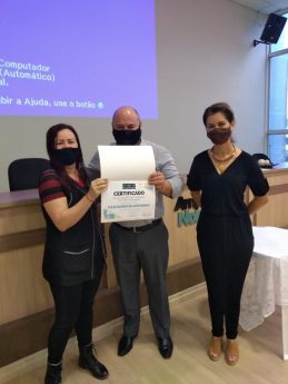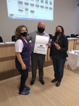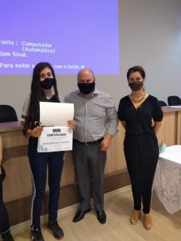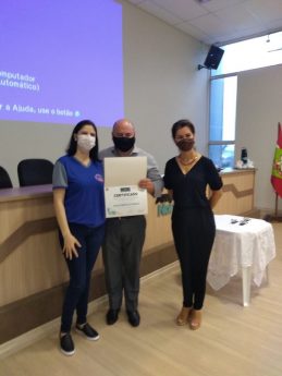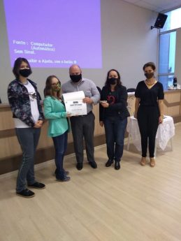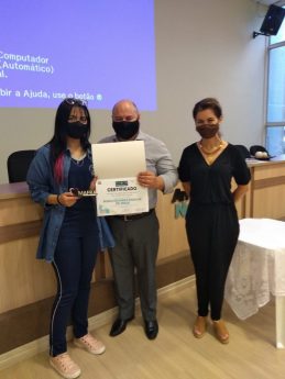 – Professora Eliane Aparecida Alpinhaki e Alunas Maria Eduarda Leardino e Maria Eduarda Padilha de Jesus, da escola estadual Barão de Antonina, na categoria Artigo de Opinião