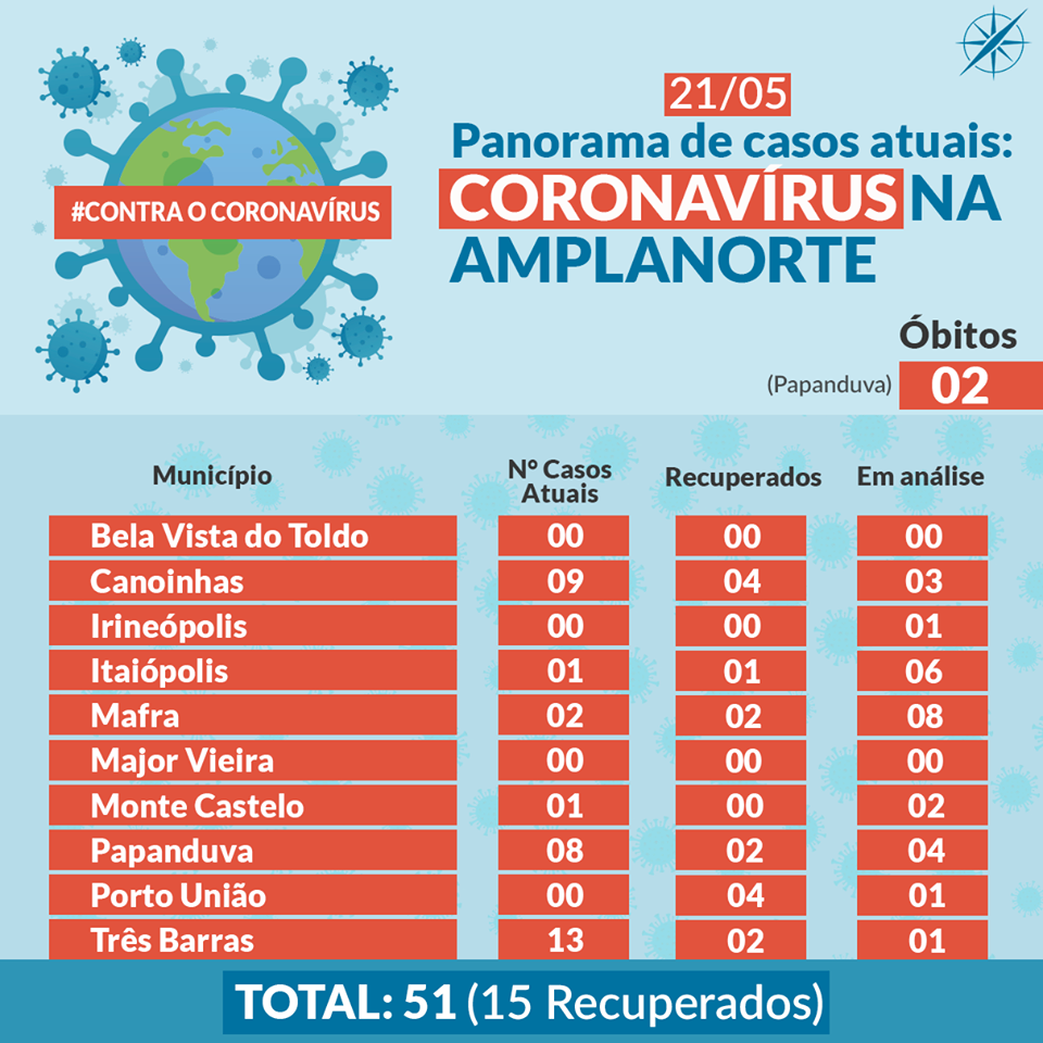 Amplanorte atualiza os números do Covid-19 na região norte de SC (21/05).