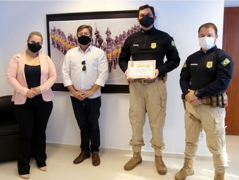 A entrega da homenagem aconteceu na sede da Policia Rodoviária Federal em Mafra, representando a Câmara de Vereadores esteve a presidente da Câmara Dircelene Dittrich Pinto e o vereador Valdecir Antônio Munhoz.