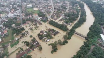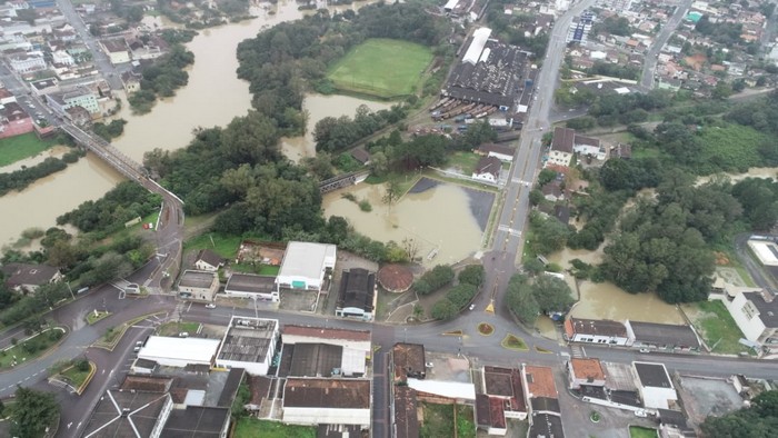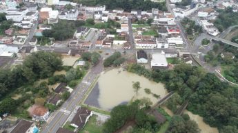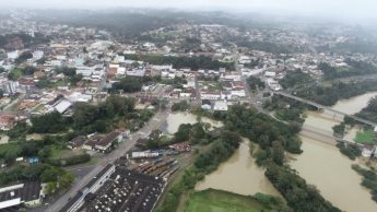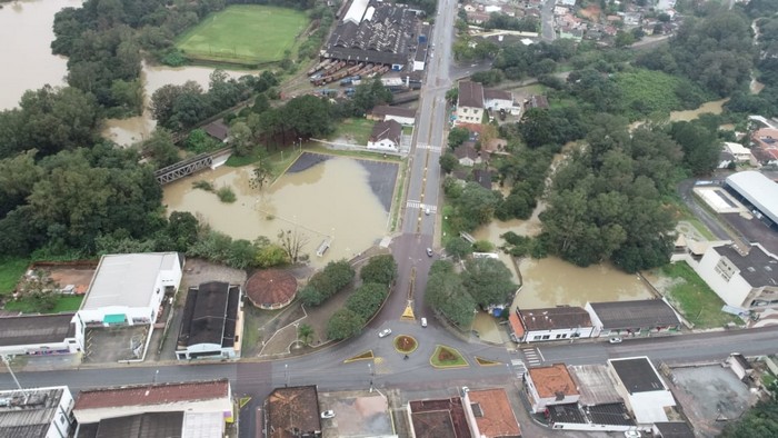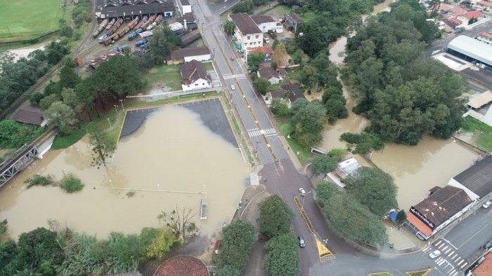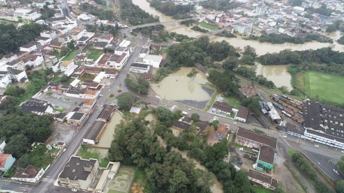 As fotos e vídeo mostram que a região central de Mafra será afetada. A PM isolou parte da área, visando prevenir acidentes. Contribua não transpondo o isolamento. Os demais pontos acima do Rio da Lança permanecem obstruídos pelas cheias, exceto a ponte próxima a Igreja Ucraína.