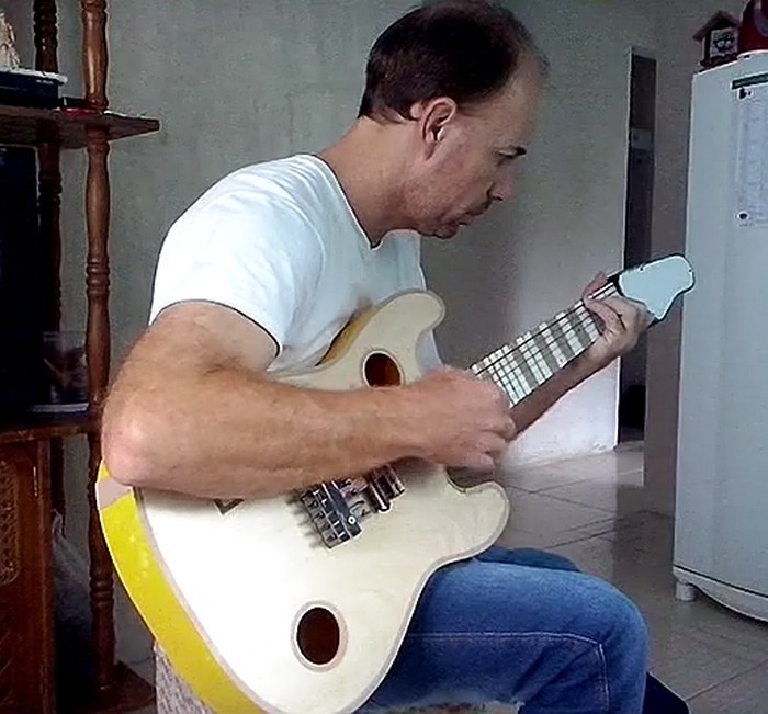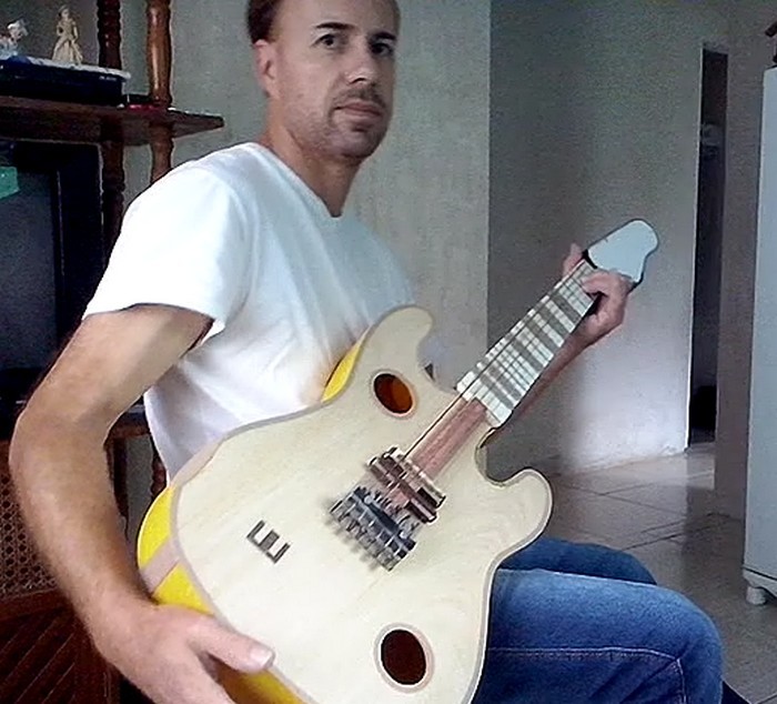 Para a confecção de um violão e uma mini harpa, por exemplo, o artista utilizou um raio de bicicleta para gerar as tarrachas e trastes, cano de ferro e cano de água para criar o braço do instrumento e balde de plástico e MDF para a caixa acústica. Também utilizou o cabo de aço do freio de mão e trocador de marchas de uma bicicleta, além de fios de cobre para a elaboração das cordas dos instrumentos.