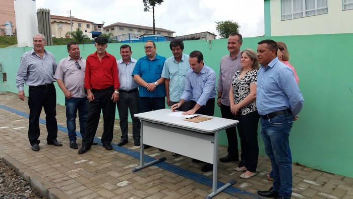 Na manhã da última segunda-feira 29, o prefeito Wellington Bielecki assinou a ordem de serviço para dar início às obras de pavimentação em lajota das ruas Vitor Konder com 91 metros de extensão e Dom Pedro II com 139 metros, ambas na Vila Buenos Aires. O evento ocorreu na frente do CEM Anjo da Guarda e contou com a presença dos secretários municipais de Educação, Esporte e Cultura, Estela Maris Bergamini Machado e Meio Ambiente e Desenvolvimento Urbano, Delfim Girardi, além dos vereadores Adilson Sabatke (presidente da Câmara), Cirineu Correa Cardoso, Éder Gielgen, Élcion José Peters, José Marcos Witt, Marise Valério Brás de Oliveira e Valdir Sokolski.