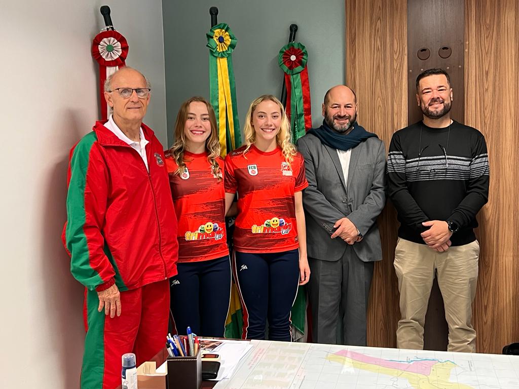 As atletas mafrenses de basquetebol, irmãs Ariele e Andressa Krol Deconto, de 16 anos, e o técnico Plácido Gaissler Filho, todos convocados para a Seleção Catarinense de Basquetebol, Sub 17, que vai disputar o Sul Brasileiro de Seleções estiveram visitando o gabinete do prefeito Emerson Maas na manhã de sexta-feira, dia 11. Eles estavam acompanhados do presidente da AMAB – Associação Mafrense de Basquetebol, Anderson Rudnik. Além das Deconto, a atleta  Maria Joana Pereira, também foi convocada para o Sub 15, mas não participou da visita por motivos particulares.