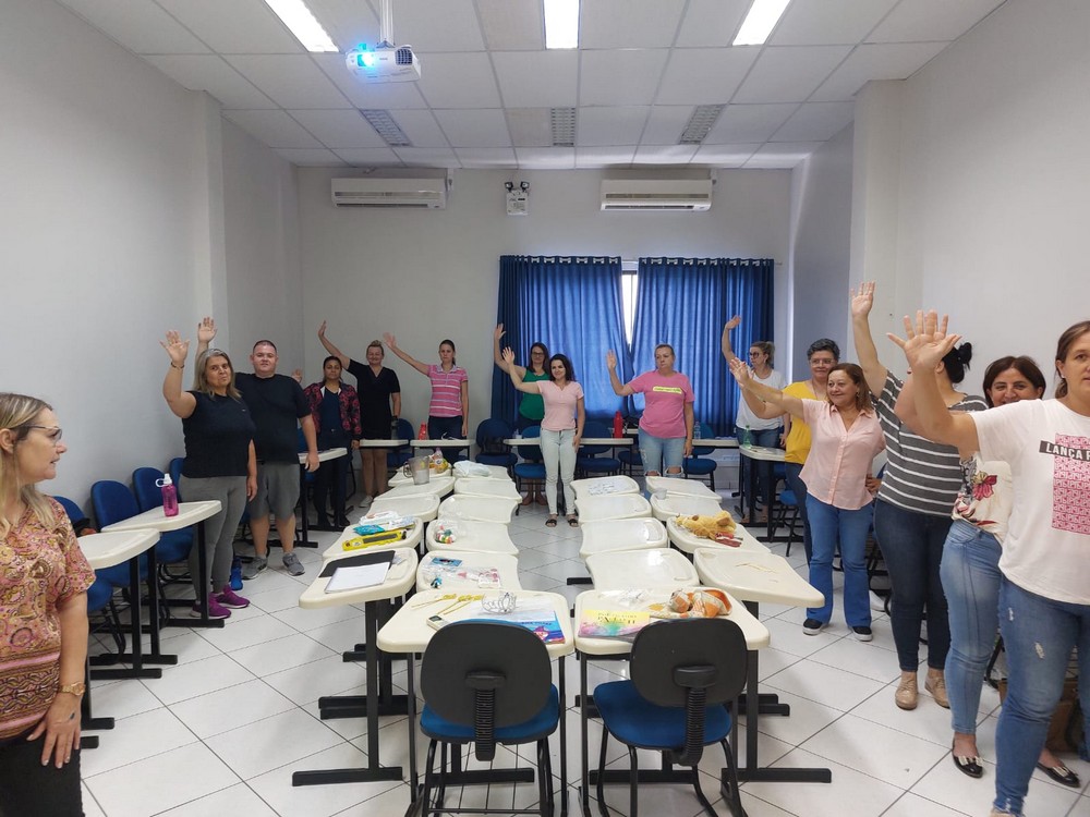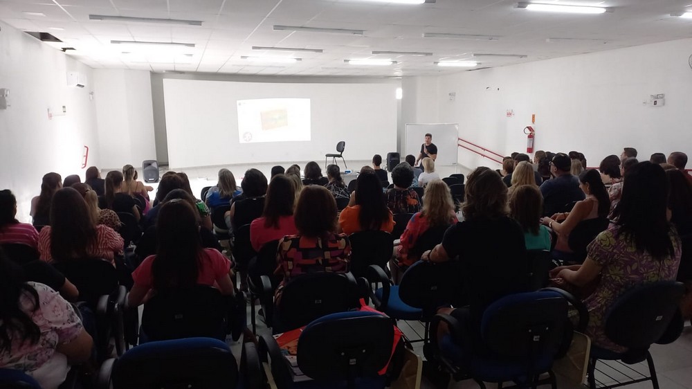 A semana pedagógica, com o tema “A mudança que quero na escola começa em mim” começou com capacitação para os professores da Educação Infantil, nas dependências do Senac e na EMEB Professor Mário de Oliveira Goeldner, abordando a formação, planejamento e rotina na Educação infantil. Já a capacitação do Ensino Fundamental I e II foi dividida em três momentos, sendo no dia 1º, palestra para os professores que trabalham com as apostilas do sistema SIM FTD. Tema: Estratégias para potencializar o ensino em sala de aula com o professor Antônio Pacheco. E nos dias 2 e 3 de fevereiro a formação foi com equipe do SENAC com o tema recuperação paralela e valorização da aprendizagem significativa.