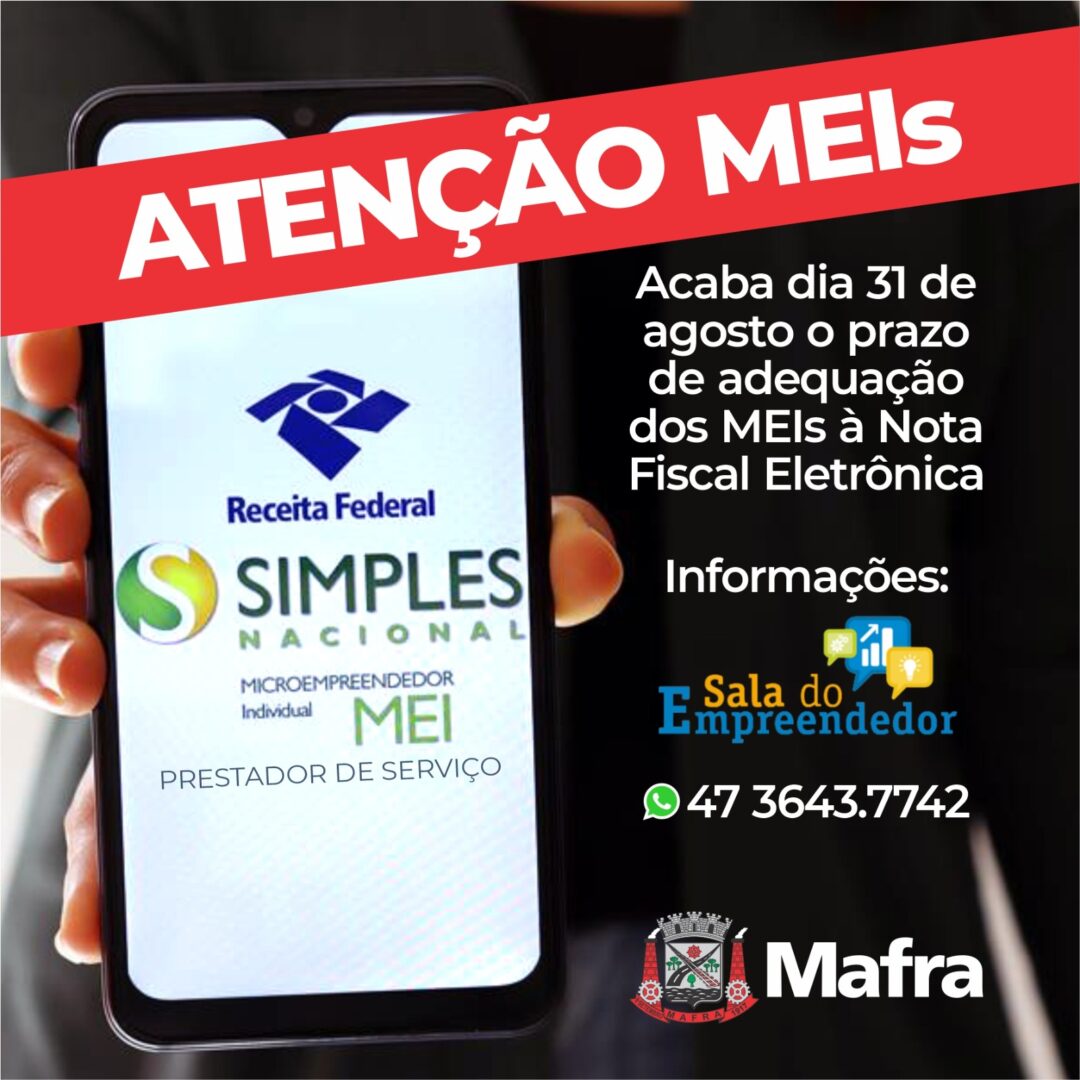 Em caso de dúvidas, o MEI pode entrar em contato com a Sala do Empreendedor de Mafra pelo telefone/whatsApp: (47) 3643-7742, ou se dirigir pessoalmente à Praça Lauro Müller, Alto de Mafra, no quiosque.