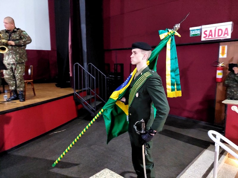 Segunda-feira, 26, inÃcio da semana, noite fria. Mas isso não impediu que o público lotasse as dependências do Cineplus Emacite para prestigiar o concerto da Banda da 5ª Brigada de Cavalaria Blindada, da cidade de Ponta Grossa (PR). A banda, em uma apresentação alusiva ao bicentenário da Independência do Brasil, foi regida pelos maestros Estefano Araújo Cezarino (1º Tenente) e Lemes Alves (Sub-tenente), ambos à frente da banda há mais de 10 anos.