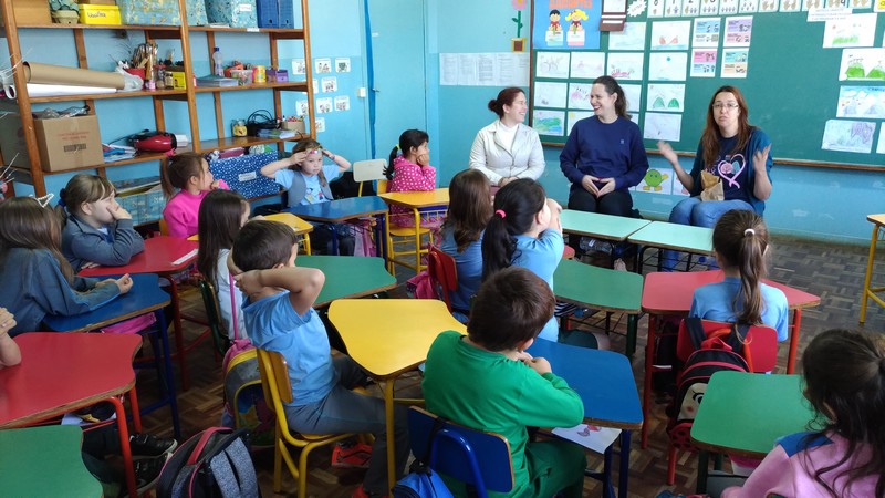 As nutricionistas da Secretaria de Educação de Mafra, Giovana Kundlatsch e Leticia Pimentel e ainda a psicóloga Talita Valerio Pacheco participaram na tarde da última quinta-feira, 29, de uma espécie de conversa séria na forma de brincadeira sobre “Imagem Corporal e Bullying”, com 24 alunos do jardim II, do CEIM Fiorige Bona.