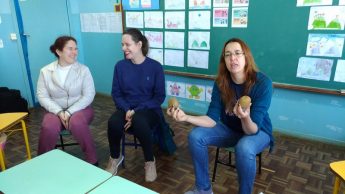 As nutricionistas da Secretaria de Educação de Mafra, Giovana Kundlatsch e Leticia Pimentel e ainda a psicóloga Talita Valerio Pacheco participaram na tarde da última quinta-feira, 29, de uma espécie de conversa séria na forma de brincadeira sobre “Imagem Corporal e Bullying”, com 24 alunos do jardim II, do CEIM Fiorige Bona.