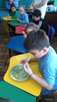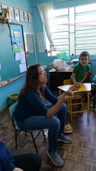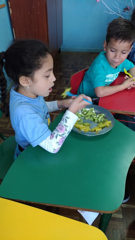 Além de informar sobre a importância do consumo de frutas, elas ainda pediram para que as crianças evitem fazer “bullying” com alimentos desconhecidos, orientando aos alunos que é importante experimentar o sabor antes de rejeitar os alimentos. Aproveitando a mesma experiência, a psicóloga falou da necessidade de todos respeitarem e não descriminarem os colegas e ainda reforçou o que a professora trabalhou em classe, como os diferentes tipos de bullying: verbal, moral, virtual, psicológico sexual, físico, social e material.