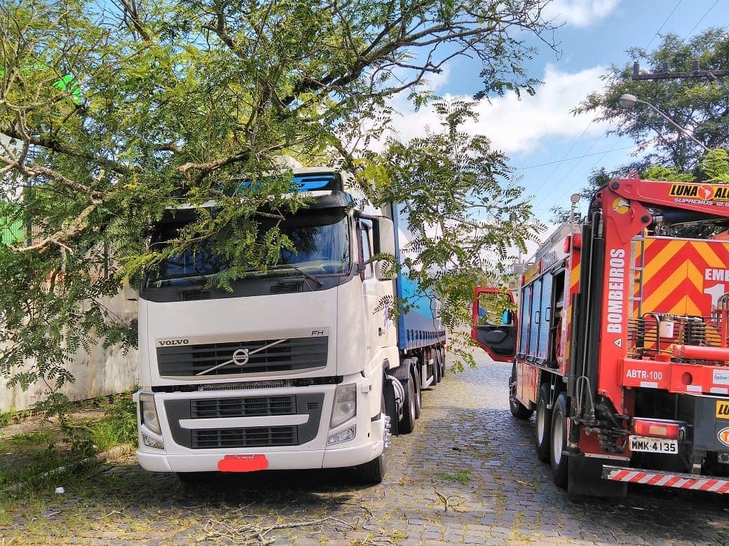 Nesta segunda-feira (15), por volta das 10h, a guarnição do ABTR-100 do Corpo de Bombeiros de Mafra foi acionando vida COBOM para atendimento de averiguação e corte de árvore, na Rua Dr Mathias Piecknick, nós fundos do mercado Belém, para averiguação e apoio á solicitação de árvore caÃda sobre um caminhão.