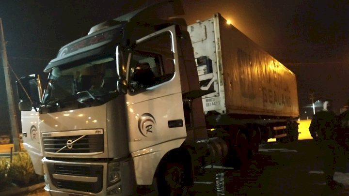 Após receberem informações de que um caminhão estava fora da rota prevista, os policiais deslocaram até o trevo entre a SC-477 e a BR-116 e, no local, depararam-se com o veÃculo.