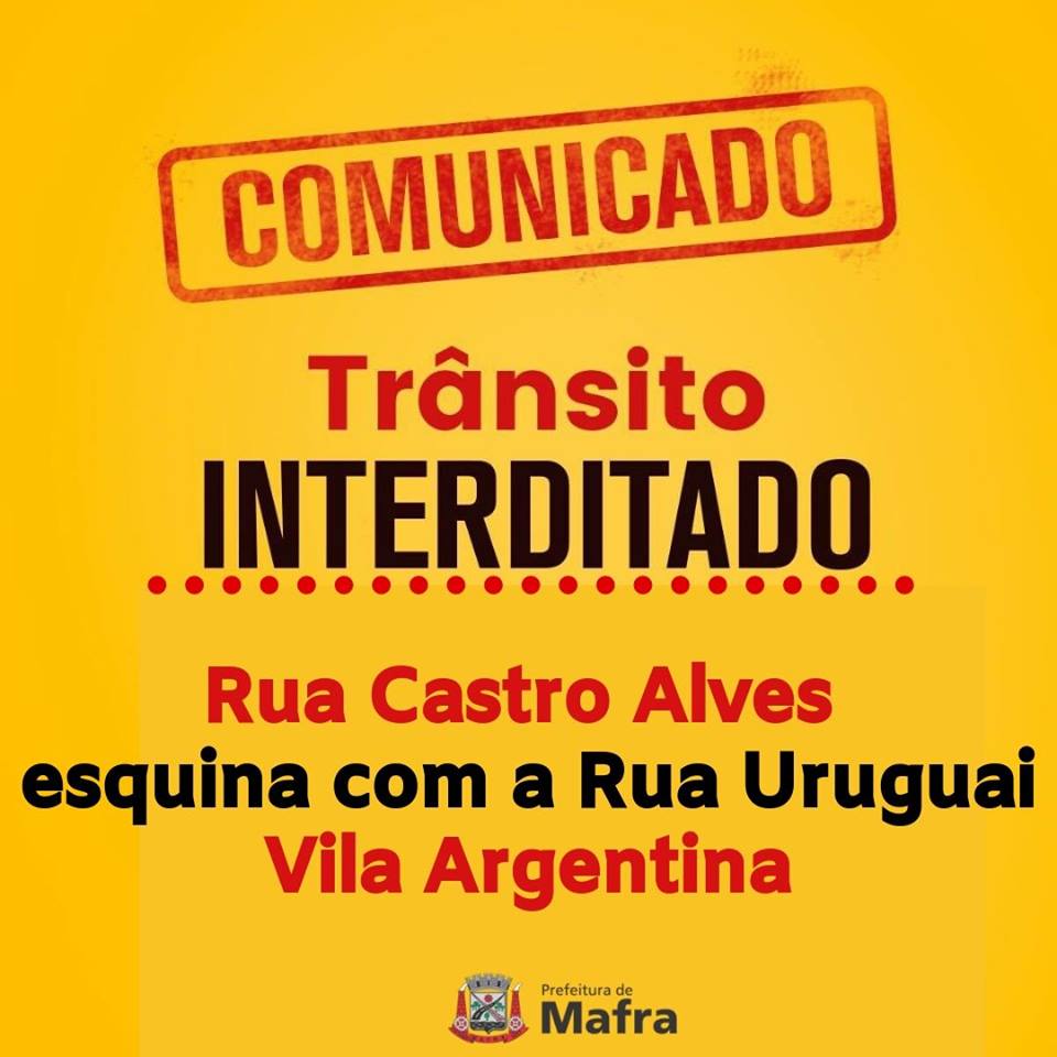 Devido à concentração de caminhões para retirada das famílias da área de risco que serão alojadas no ginásio do Cemma. A Prefeitura solicita que seja realizado o desvio para agilizar o processo e evitar possíveis acidentes de trânsito na Rua Castro Alves, esquina com a Rua Uruguai, na Vila Argentina.