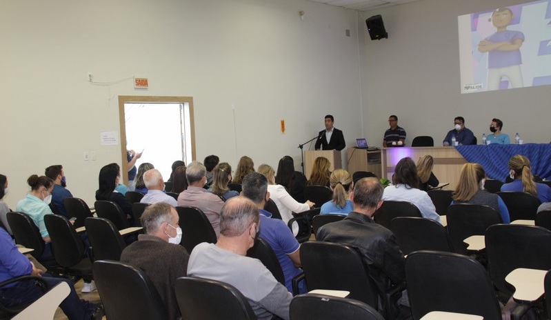 Na sequência, o Dr. Enio Coimbra, médico de saúde da família, fez uma palestra sobre saúde do homem, destacando a história do Novembro Azul – movimento oriundo da Austrália em 2003 e de iniciativa de dois homens. Ele também disse que o movimento começou em 2008 no Brasil com a prevenção ao câncer de próstata, mas que hoje o foco é também a saúde do homem. Em seguida, o médico falou sobre os sintomas do câncer de próstata, mitos, verdades e diagnóstico. Como mensagem final e conselho, disse: “homem que se cuida, é homem de atitude”.
