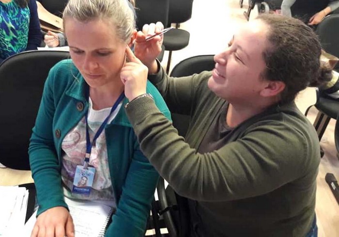 Na última quarta-feira, 27 de março, a enfermeira do CAPS I de Mafra, Adriana Moro que também é especialista em Acupuntura, treinou 26 profissionais da Secretaria Municipal de Saúde de Mafra para a realização da Auriculoterapia no SUS. Além do encontro presencial os colaboradores também puderam contar com o material do Ministério da saúde de capacitação à distância para atendimentos com Auriculoterapia.