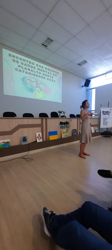 A coordenadora do Caps I de Mafra e organizadora do evento, Adriana Moro, falou sobre as dificuldades descritas pelos municípios e a necessidade de apoio do Estado. Em seguida, a naturológa do Caps, Helen Jéssica Silva, conduziu a todos a um “importante momento de meditação em movimento por meio da dança circular” – uma das Práticas Integrativas e Complementares (PICS) oferecidas pelo SUS.