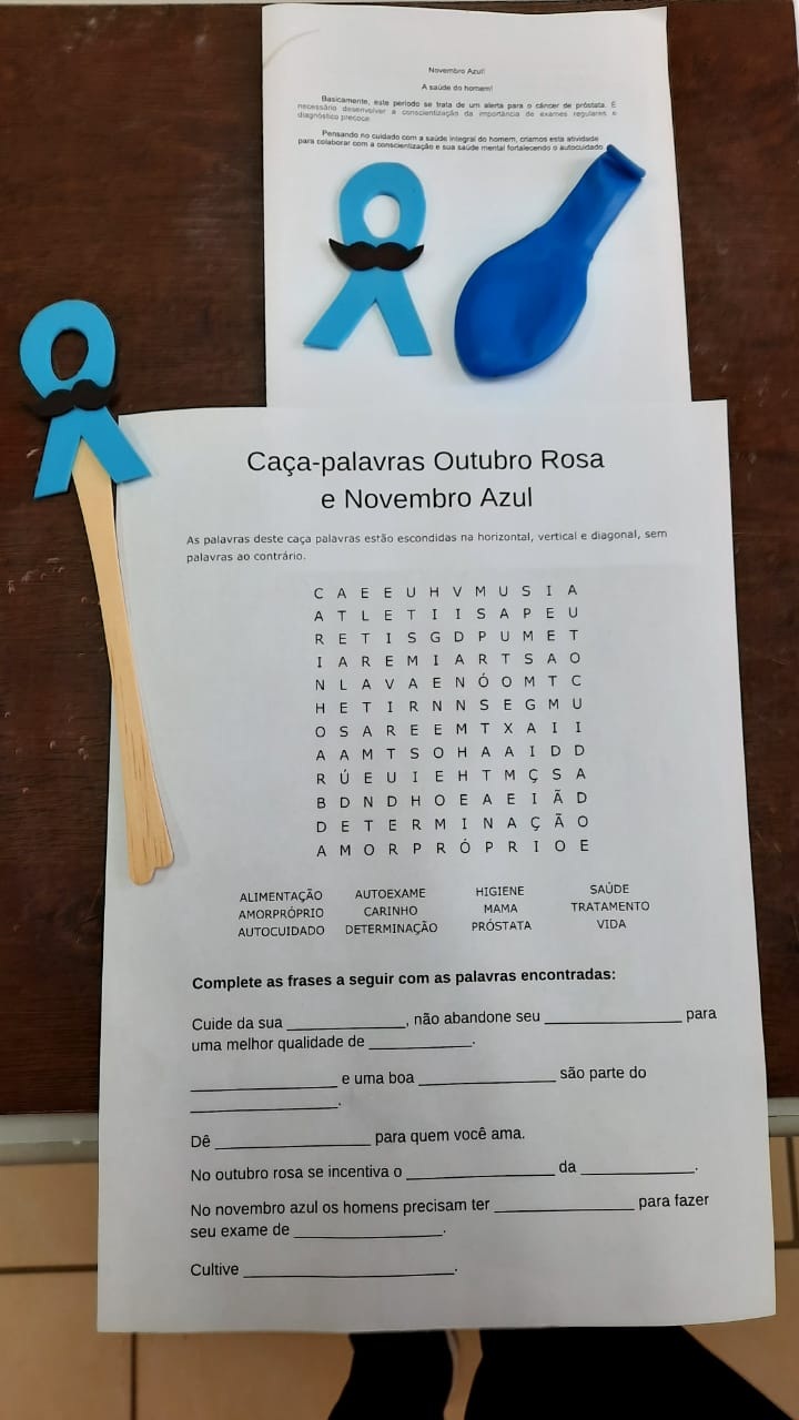 Dando continuidade à prestação de serviços à comunidade e aos usuários, o Caps I Casa Azul de Mafra desenvolveu, há alguns meses, um trabalho que vem atendendo a rotina de oficinas e grupos terapêuticos de forma remota. Neste mês, para lembrar o “Novembro Azul”, estão sendo entregues 100 kits de atividades para os usuários graves e persistentes sobre esta temática.