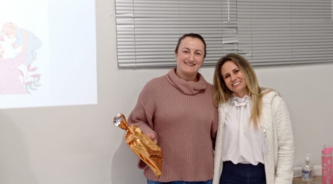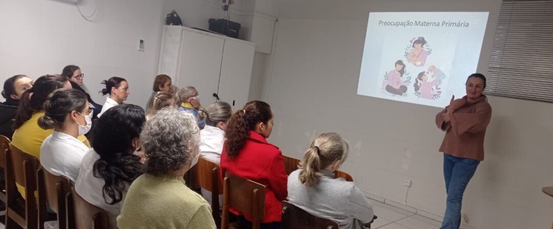 A psicóloga do CAPS I – Casa Azul, Micheli Krayevski Eckel esteve na Maternidade Dona Catarina Kuss falando com os profissionais da instituição sobre estratégias de manejo adequado a gestantes usuárias de cocaína/crack, bem como com o bebê com síndrome de dependência neonatal. Na ocasião, a profissional destacou a importância de os profissionais de saúde tratarem a dependência química como uma doença.