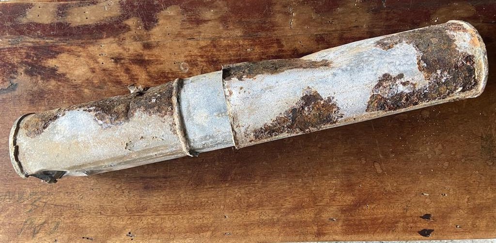 Há aproximadamente dois meses, durante os trabalhos de reforma da edificação que abriga a Igreja Nossa Senhora das Graças, no bairro Vila Ivete, em Mafra, foi encontrado dentro de uma pilastra da base frontal antiga, um objeto de metal.