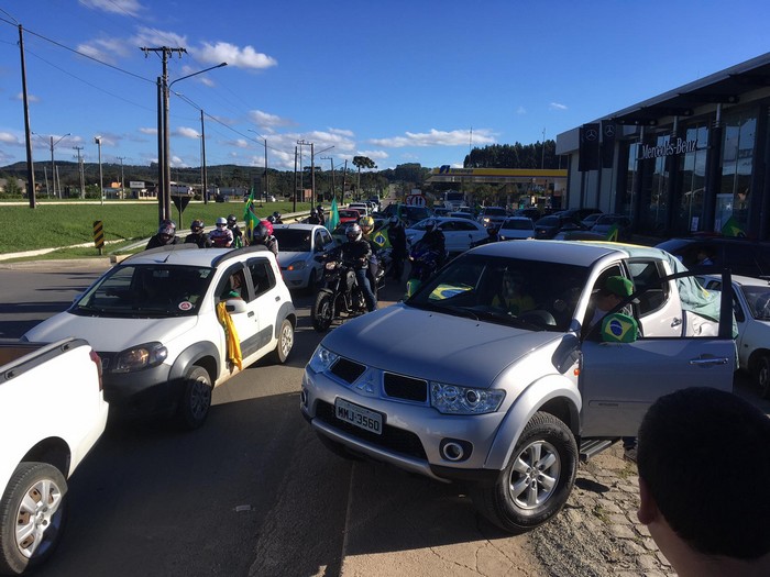 Na tarde deste domingo (26), militantes pró-Bolsonaro, realizaram em Mafra uma carreata em favor do presidente. A manifestação também tinha como objetivo demonstrar apoio à reforma da Previdência e ao pacote anticrime, medidas que estão tramitando no Congresso Nacional. Segundo os organizadores, cerca de 300 pessoas participaram da movimentação.