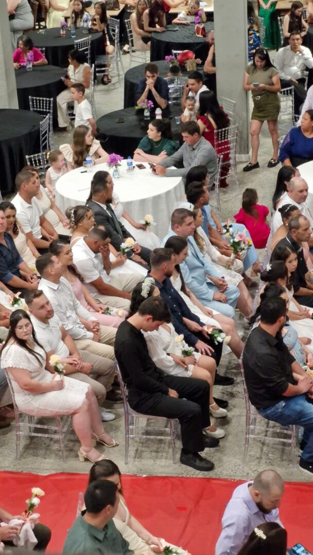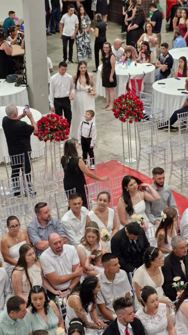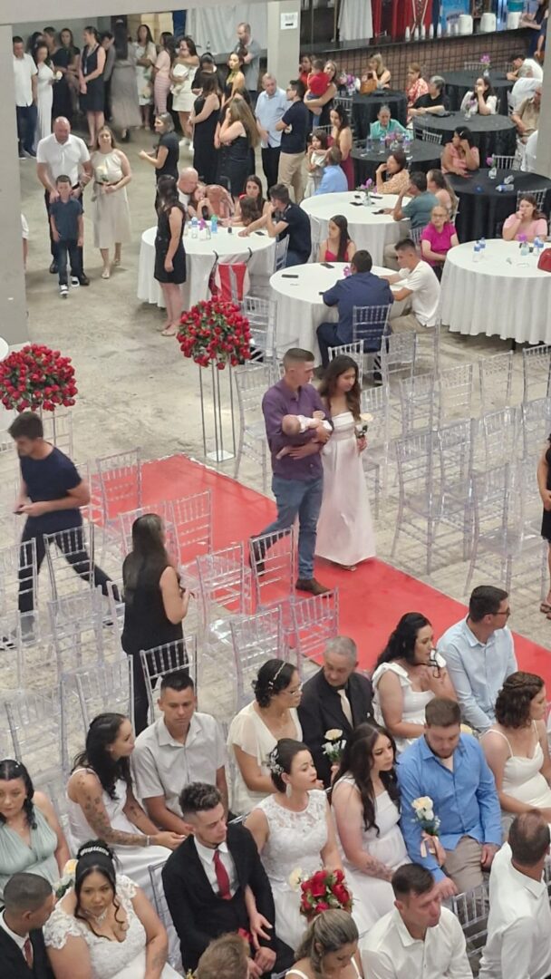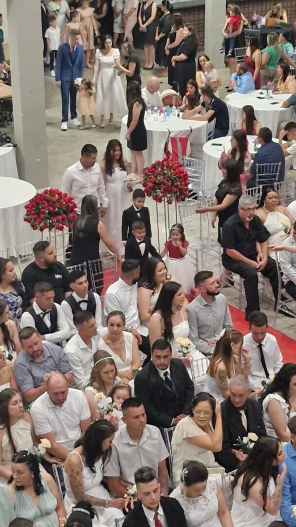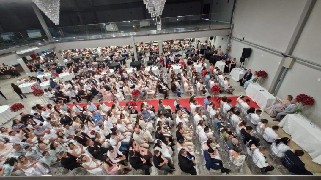 Em uma tarde marcada por emoção, celebração e mensagens sobre união familiar, a Prefeitura de Mafra, em parceria com o Cartório de Registro Civil, Títulos e Documentos e Pessoas Jurídicas de Mafra, realizou no sábado, dia 06, a cerimônia de casamento comunitário que oficializou a união de 123 casais no salão de eventos do Espaço Álamos. A solenidade contou com a presença de autoridades municipais, familiares e padrinhos especialmente escolhidos para o momento.