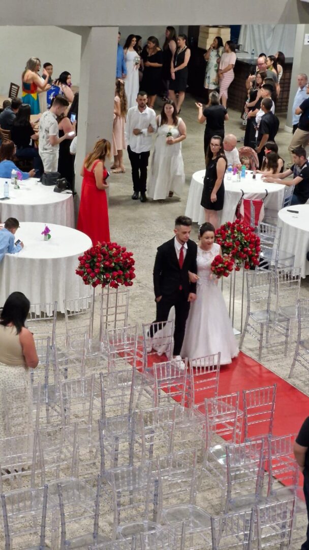 A convite do prefeito, o pastor Elias, realizou a benção dos casais. Entre lágrimas de emoção, beijos e abraços, os casais finalmente obtiveram a certidão que tanto sonhavam. Este foi o caso de Benjamin e Luzia Pierin da Luz, de 75 e 68 anos. Eles relataram que se conheceram em um baile, há 18 anos. Segundo Dona Luzia, o primeiro olhar já revelou que ali poderia começar uma história. Seu Benjamim contou que sentiu o mesmo. Desde então, passaram a viver juntos. Ele explicou que, inicialmente, o convite para que ela fosse morar em sua casa não tinha a intenção imediata de formalizar uma união. Entretanto, com o tempo, a convivência se fortaleceu, o carinho entre as famílias cresceu e, após 18 anos, decidiram oficializar o casamento. Seu Benjamim destacou o quanto admira a companheira, descrevendo-a como “uma mulher guerreira, que sempre o apoiou”. Entre as atividades que mais gostam de fazer juntos, citaram descansar lado a lado e, sempre que possível, dançar. Dona Luzia, que conhece o vereador Wittinho, recebeu dele os votos de felicidade. “Ele é um filho de coração para nós”, disse, lembrando que o coração só se fortalece e não envelhece.