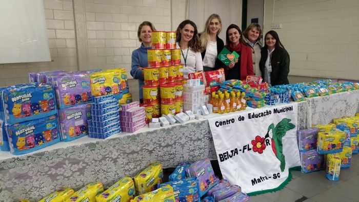 O CEIM Beija Flor recebeu na última quinta-feira, 6 de setembro, 646 itens de higiene para as crianças, doados pela farmaSesi, frutos da Campanha “Amigos farmaSesi”, realizada no período de junho a agosto deste ano. Dos 646 itens, 323 foram doados pelos clientes e 323 pela farmaSesi de Mafra. Constam de fraldas descartáveis, sabonetes, shampoo, lenços umedecidos, leite em pó, creme dental e pomadas, entre ouros.