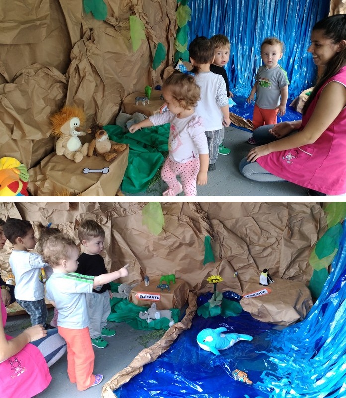 “Tentamos criar um espaço que remetesse à natureza com cachoeiras, árvores, rochas e os animais em seu habitat”, explicaram as professoras. E as crianças mostraram-se encantadas e interessadas como o que presenciavam. “Tudo é novidade para elas. Percebemos várias sensações como alegria e medo, além do despertar da curiosidade”, observaram. Elas agradeceram o apoio da coordenação e direção da escola e concluíram que “o mais importante é trabalhar com amor”.