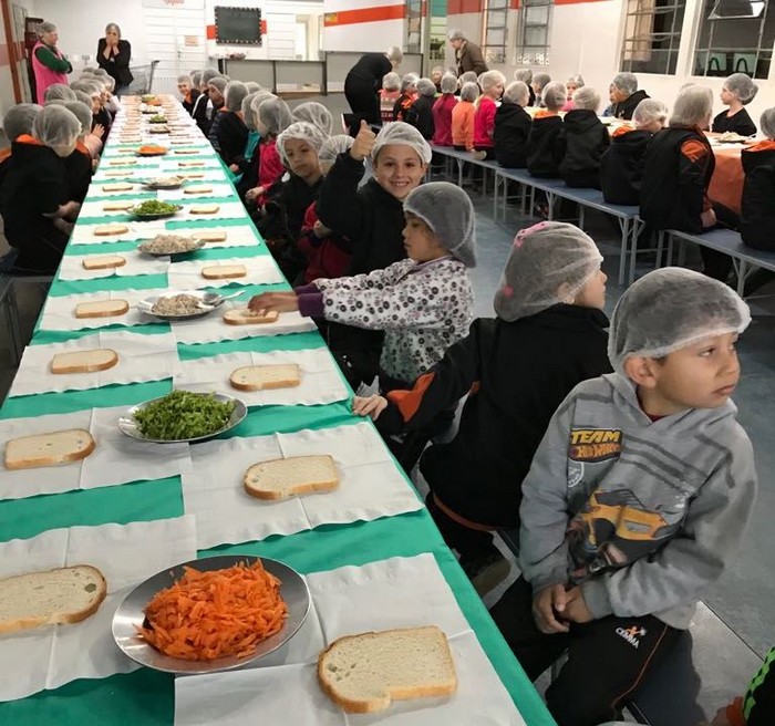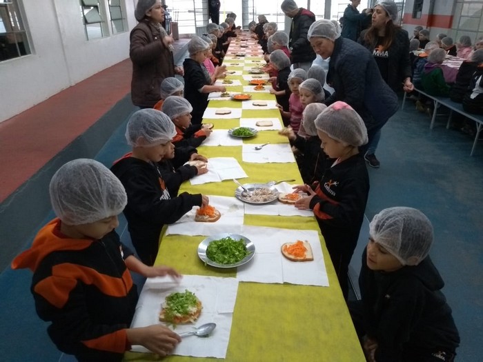 As nutricionistas da Secretaria Municipal de Educação, Giovana Kundlatsch e Leticia Pimentel enfatizaram a importância da escola perceber novas formas de apresentar os alimentos, promovendo a curiosidade, levando-os inicialmente a experimentar – no caso a cenoura e a alface – e ainda observarem que ingredientes foram utilizados no lanche que irão comer, além de incentivá-los a montarem o próprio lanche.