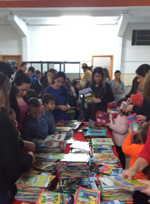 A operadora de crédito, Gislaine Schermack, mãe da Gabryella de 7 anos, acompanhou a filha na escolha dos livros que tentava pegar em troca dos que havia doado. Já tinha escolhido 3 dos 7 a que tinha direito, sendo dois gibis – da Mônica e da Magali – e um sobre o “Nascimento de Jesus”. Para ela o evento foi maravilhoso e muito importante para incentivar a leitura entre as crianças e jovens. “Hoje em dia tudo é muito virtual e por isso é muito bom que as crianças tenham os livros nas mãos”, declarou.