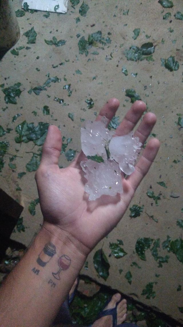 Chuva de granizo em Riomafra. Bairro Restinga. As fotos são de Nicole Simões de Oliveira.