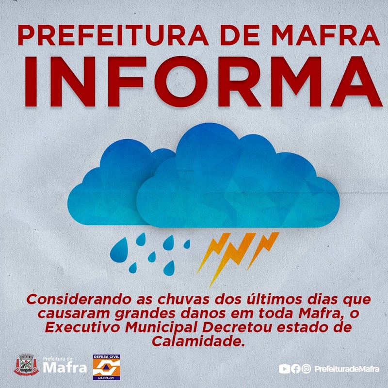 O prefeito de Mafra, Emerson Maas, fez uma transmissão nas redes sociais fazendo um apelo para que a população e lojas façam doação de lonas para ajudar as famílias que tiveram suas casas atingidas pela chuva de granizo. Estima-se que mais de 3 mil famílias foram afetadas.