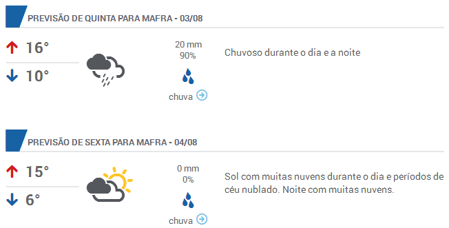 Em Mafra a chuva deve chegar na quinta-feira, de acordo com a previsão do site Clima Tempo.
