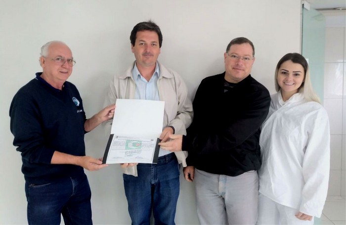 Estiveram presentes na entrega do certificado dois dos sócios-proprietários, Adriano Novacki e Luiz Carlos de Souza, a médica veterinária e inspetora do frigorÃfico, Fernanda Vanise Tureck, e o gestor regional da Cidasc de Mafra, Fabiano Franco dos Santos, além dos demais funcionários do frigorÃfico.