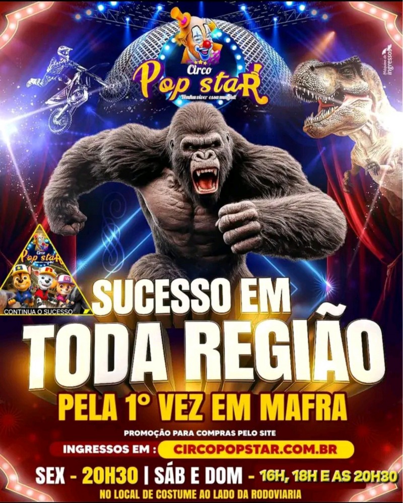 O Circo Pop Star estreia sexta-feira às 20h30 em Mafra, ao lado da rodoviária.